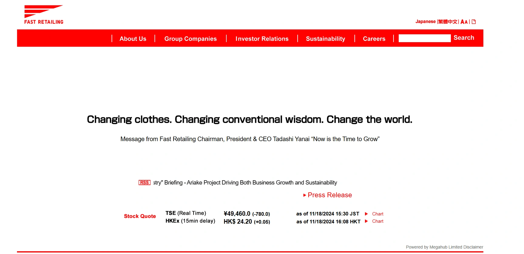 - Main Business: Own-brand production (such as UNIQLO), global retail apparel.